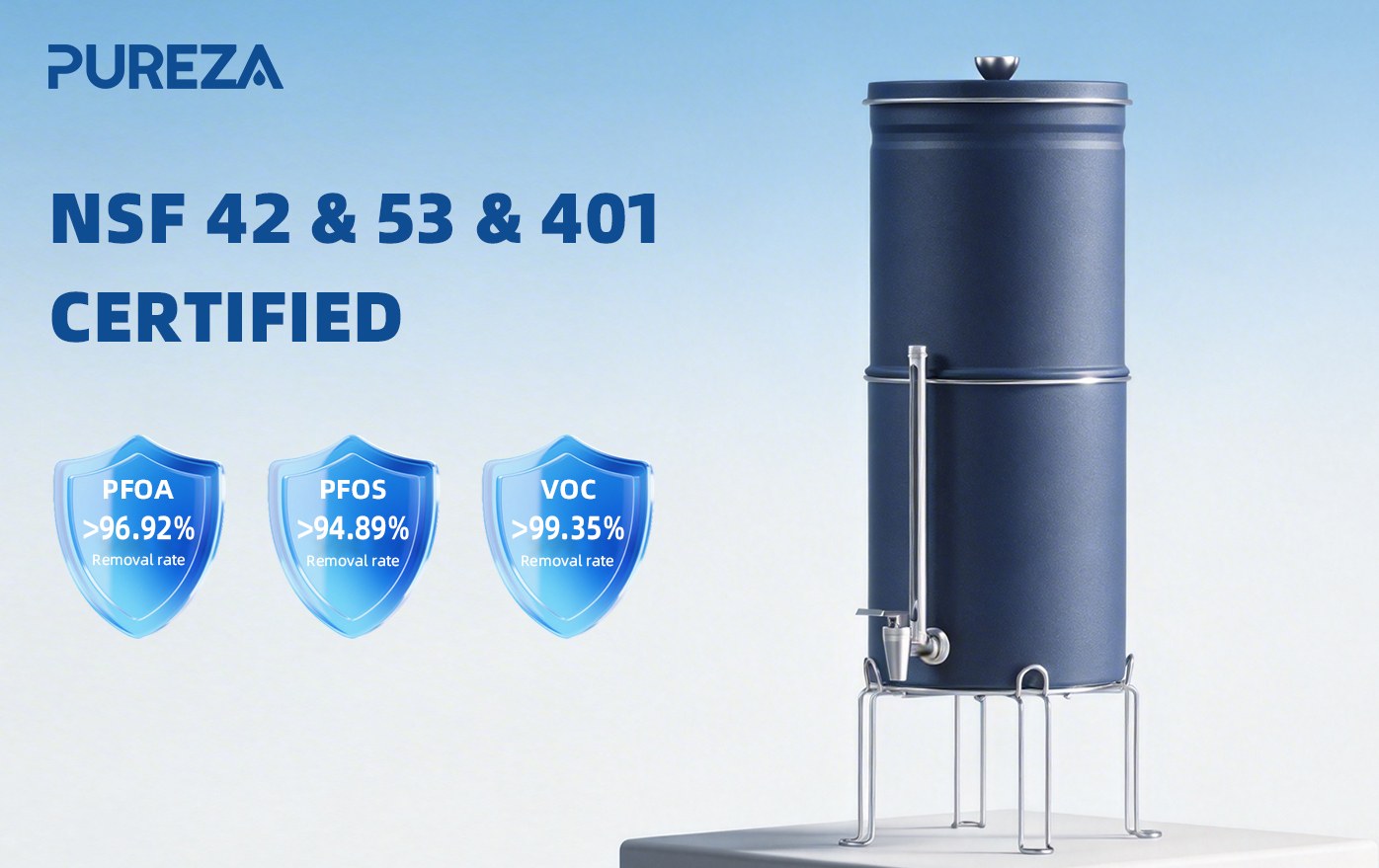 NSF-certified gravity filter systems deliver consistent filtration performance across various water sources. Food-grade stainless steel is both durable and hygienic, allowing safe long-term water storage. Whether using tap water, well water, or outdoor water sources, NSF certification ensures reliable filtration results.
